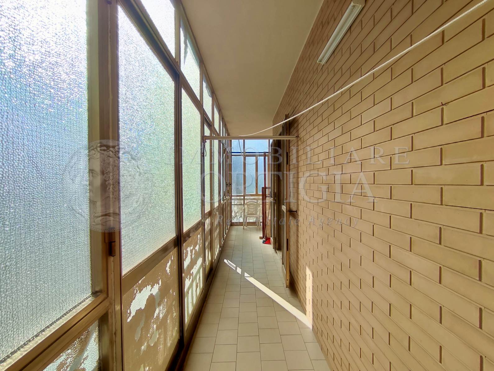 We offer for sale an apartment located within the San Giorgio Complex, in a gated residential area. The property, in need of renovation, comprises an entrance hall, study, living room, eat-in kitchen, hallway, bathroom, single bedroom, double bedroom, and closet.