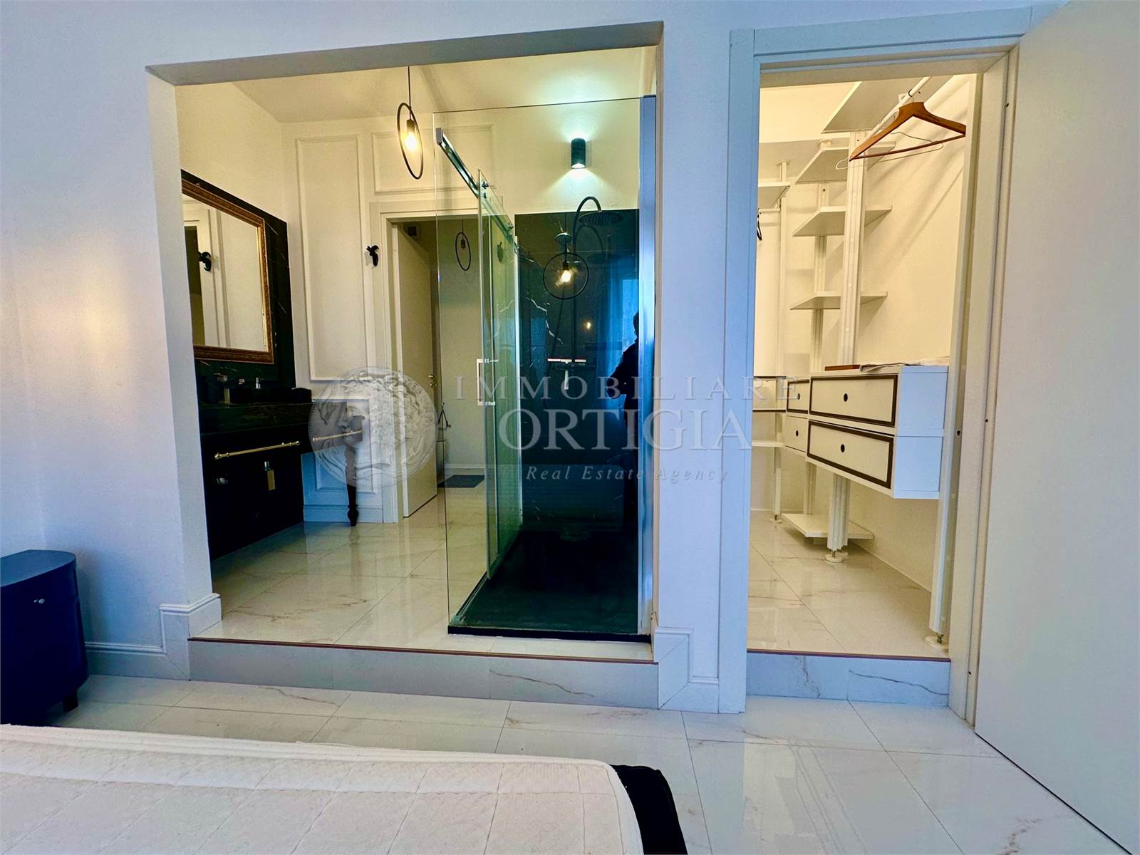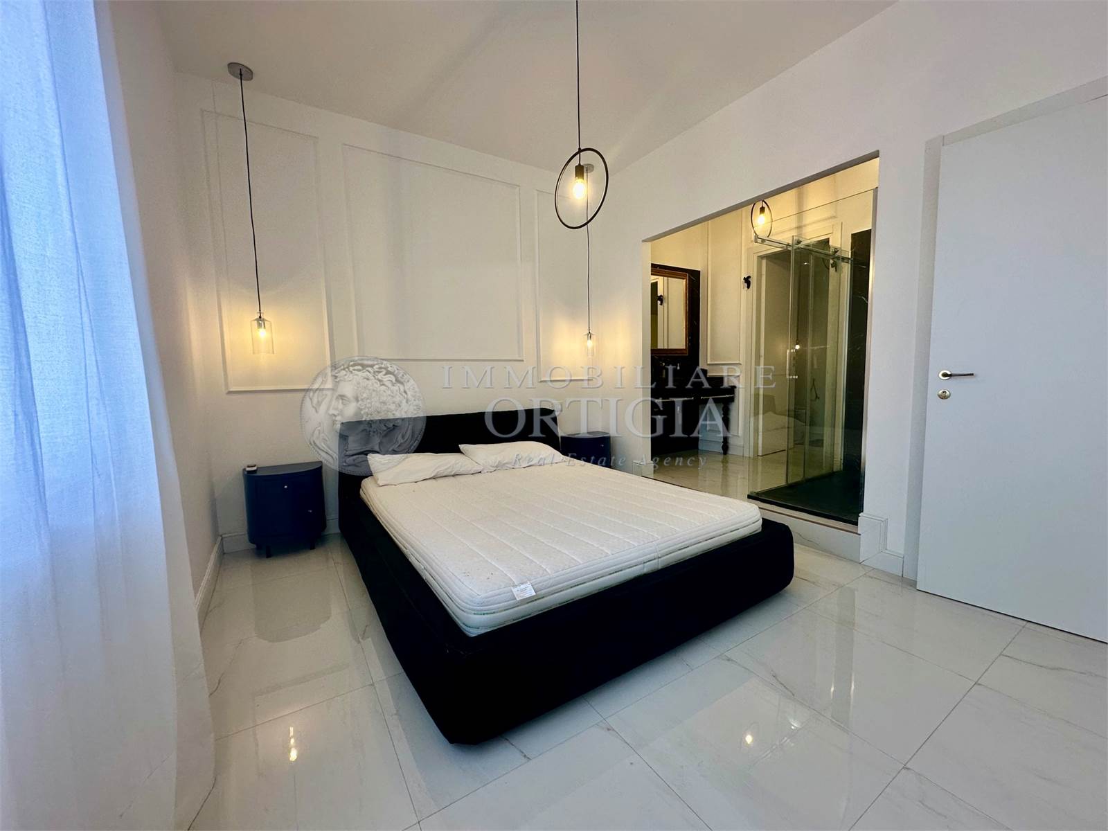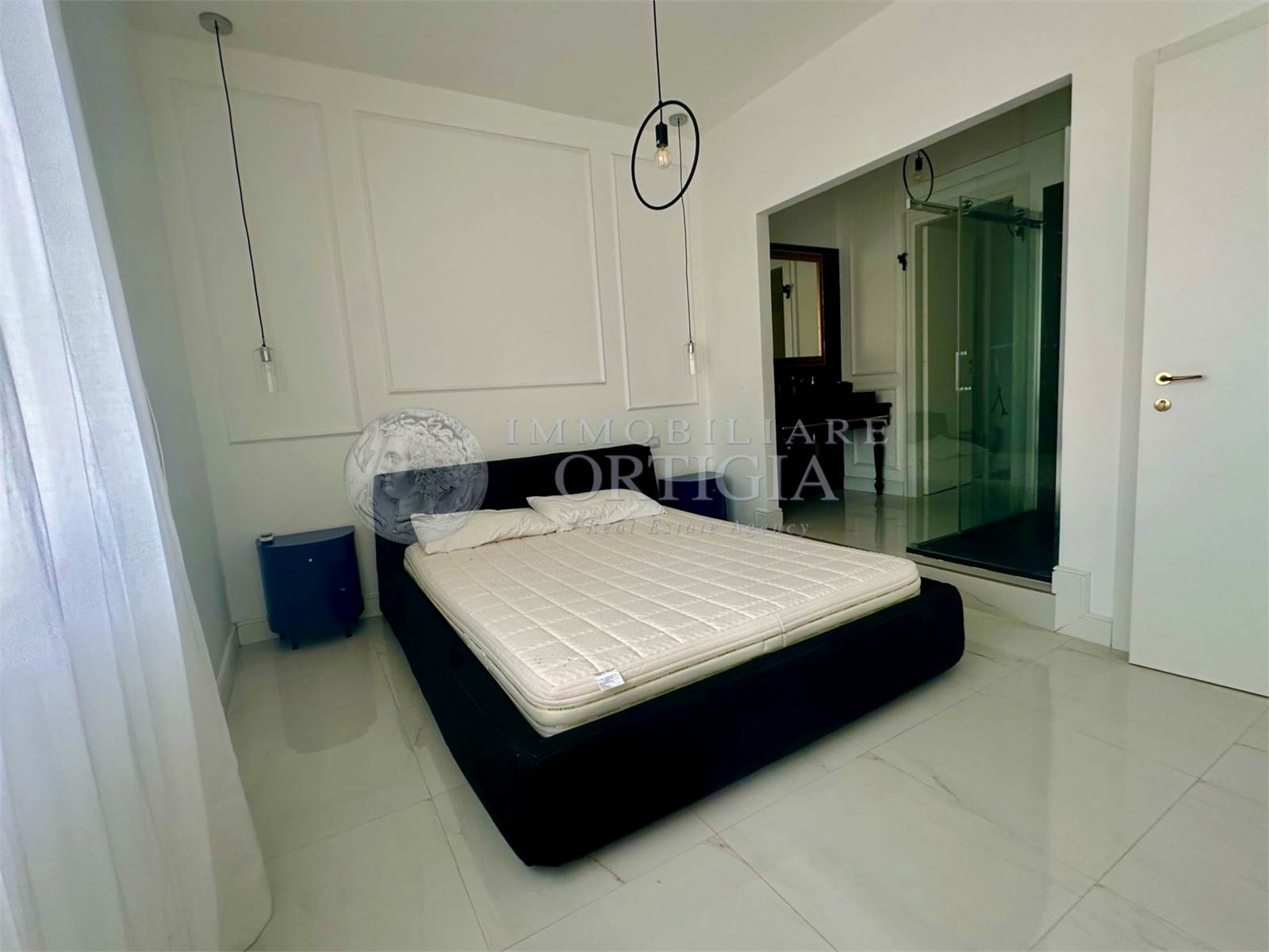 L'appartamento è composto da ingresso su soggiorno con balcone,cucina a vista, camera da letto con bagno ensuite e cabina armadio.
