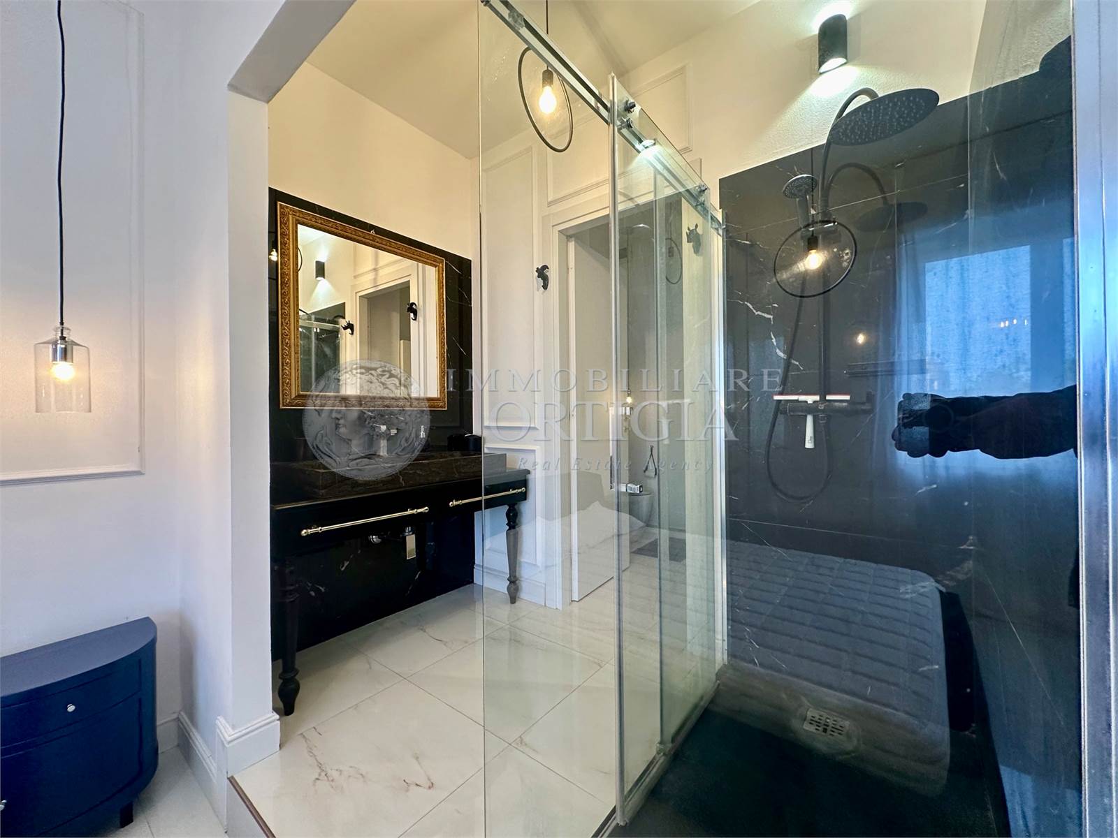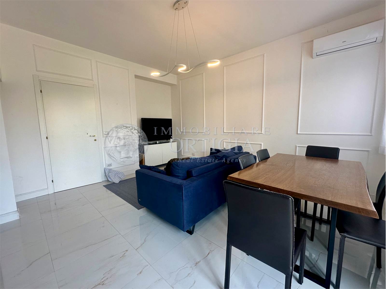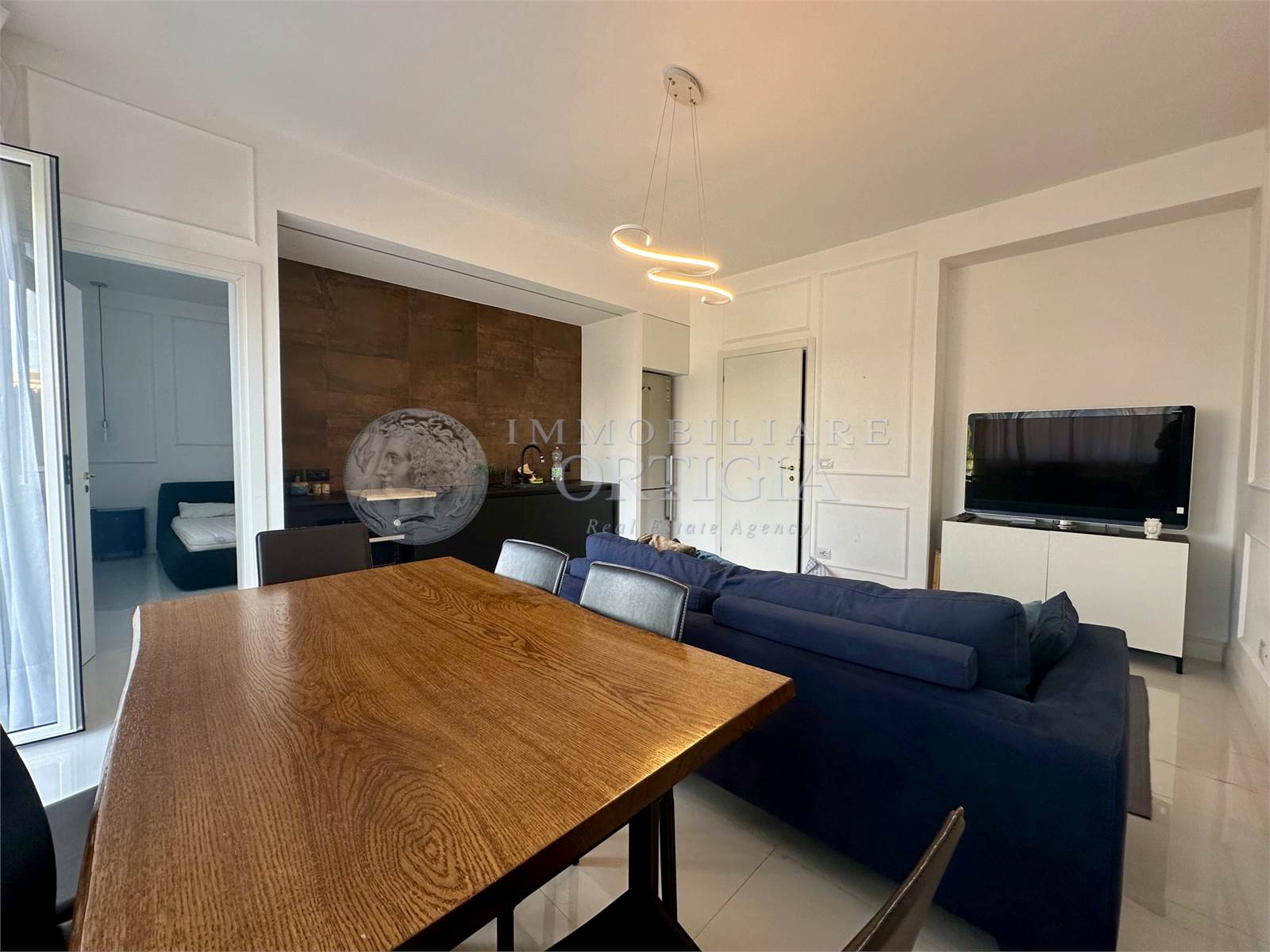 L'appartamento è composto da ingresso su soggiorno con balcone,cucina a vista, camera da letto con bagno ensuite e cabina armadio.