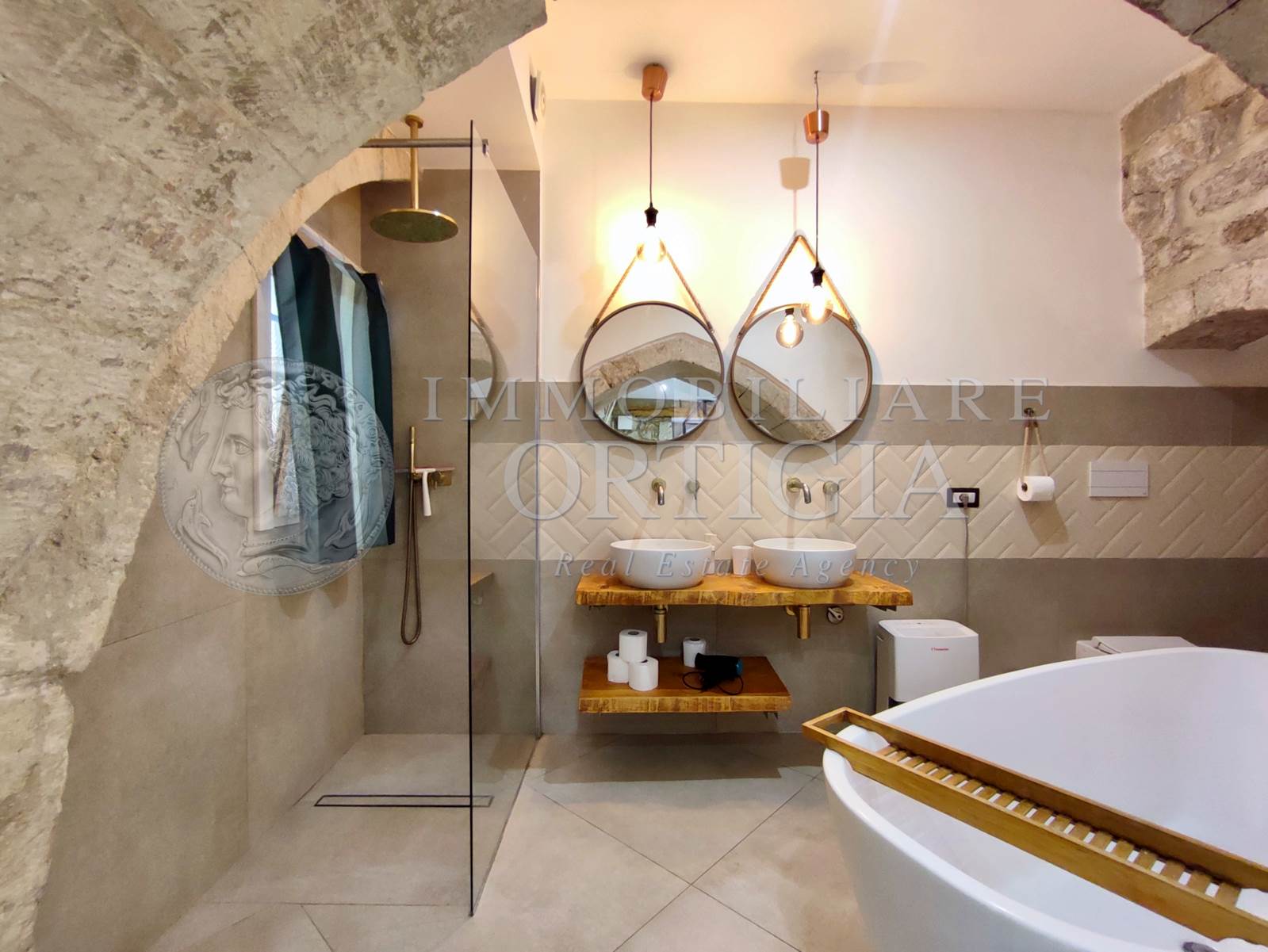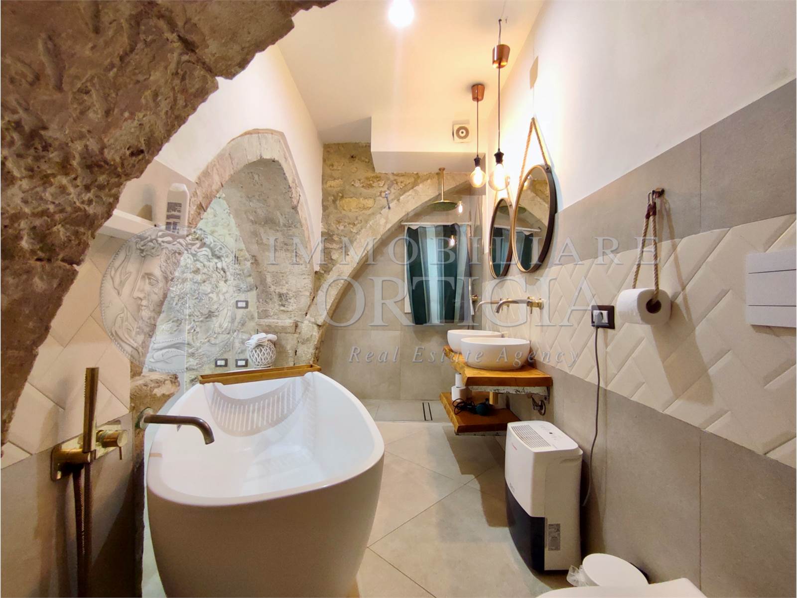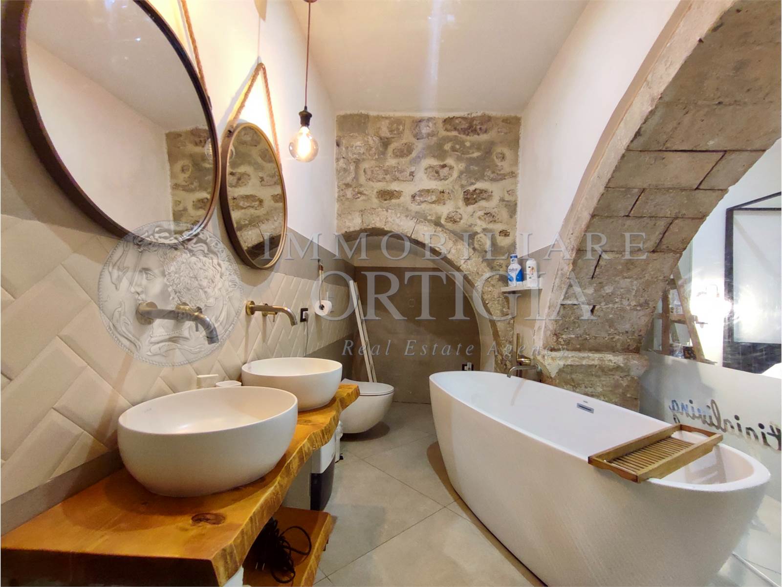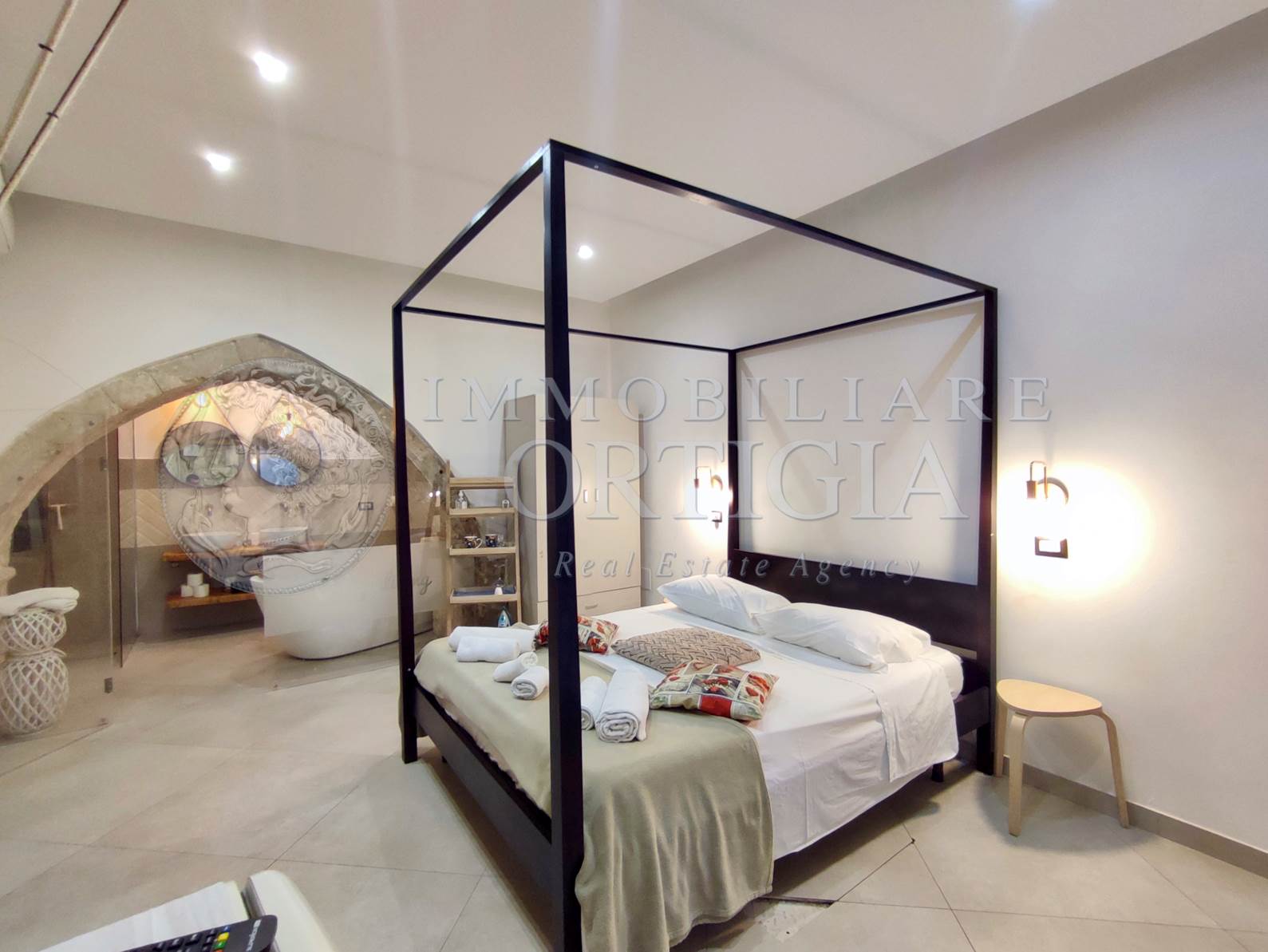 Vivi l’autentico fascino di Ortigia in questo incantevole appartamento al piano terra nel cuore della Giudecca, 41 mq di pura magia con pietra a vista e un suggestivo arco che racconta storie antiche, con bagno a vista,