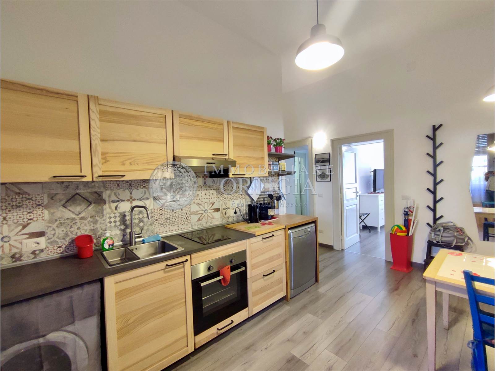 L’immobile si sviluppa su una superficie ben distribuita, con ingresso su cucina, soggiorno, due camere da letto entrambe con bagno in camera, e un piccolo ripostiglio.