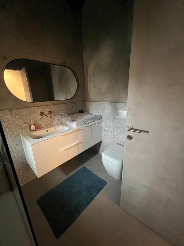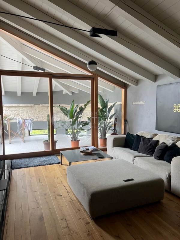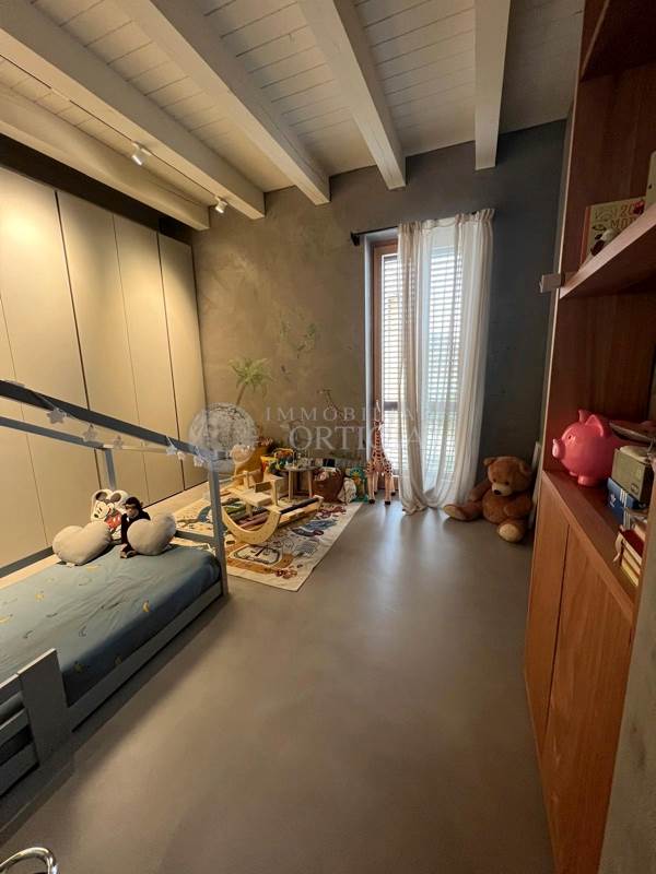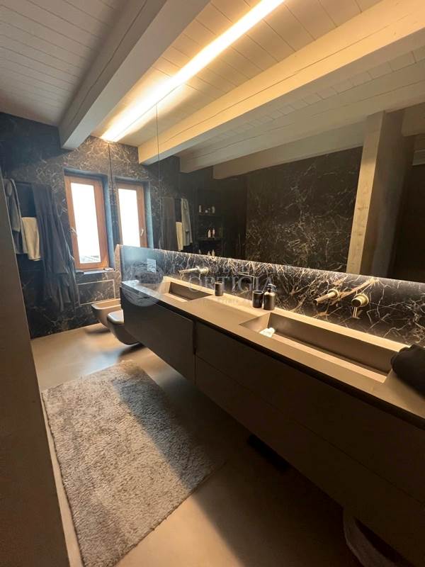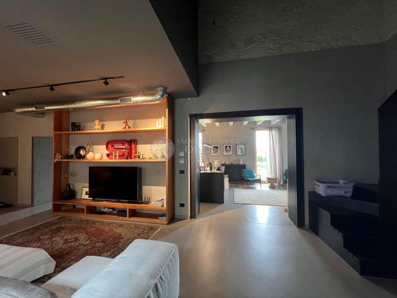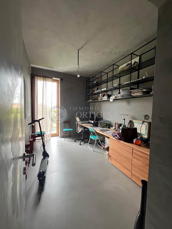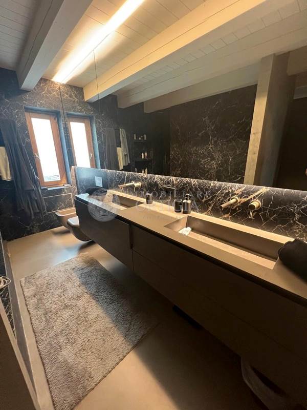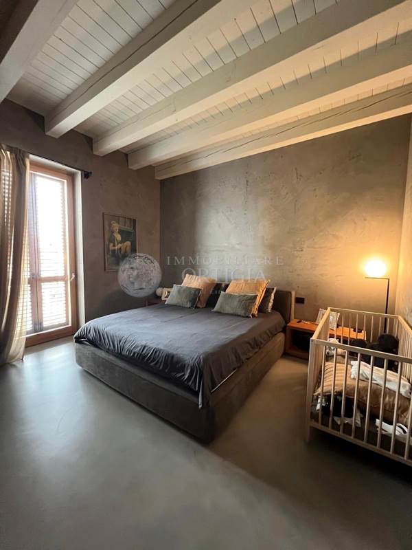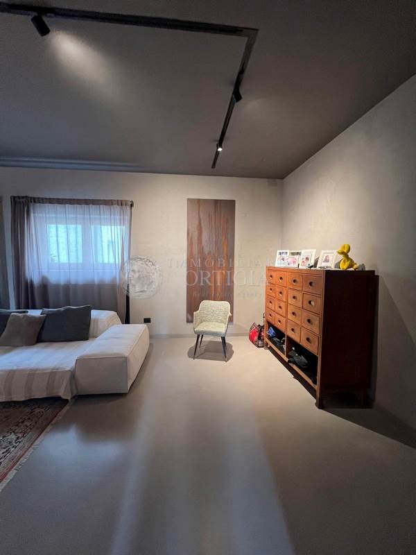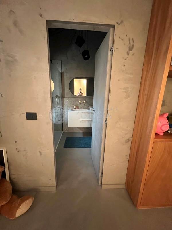 Sempre su questo livello si trovano un bagno per gli ospiti, uno studio dal design moderno, la camera padronale con ampio bagno en suite e una seconda camera anch’essa con bagno privato. Una scala interna su misura, progettata per valorizzare i volumi dell’abitazione, conduce al piano superiore.