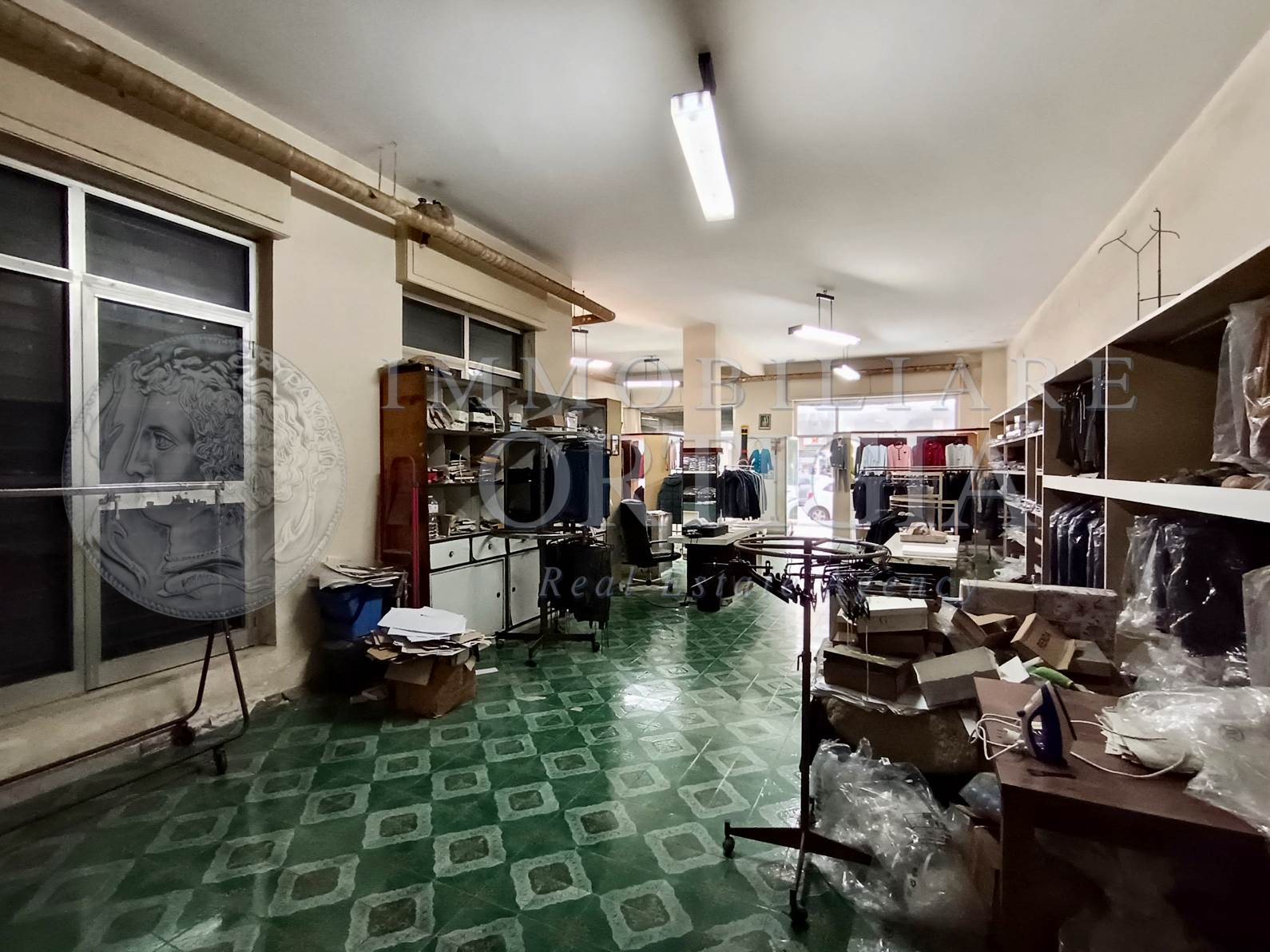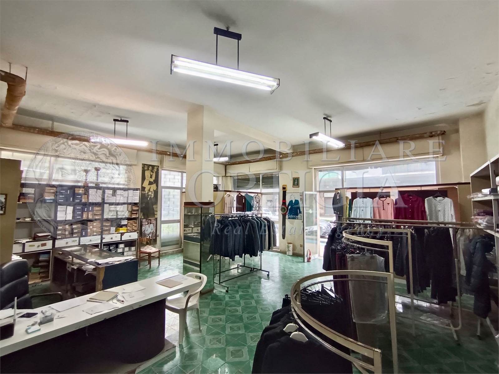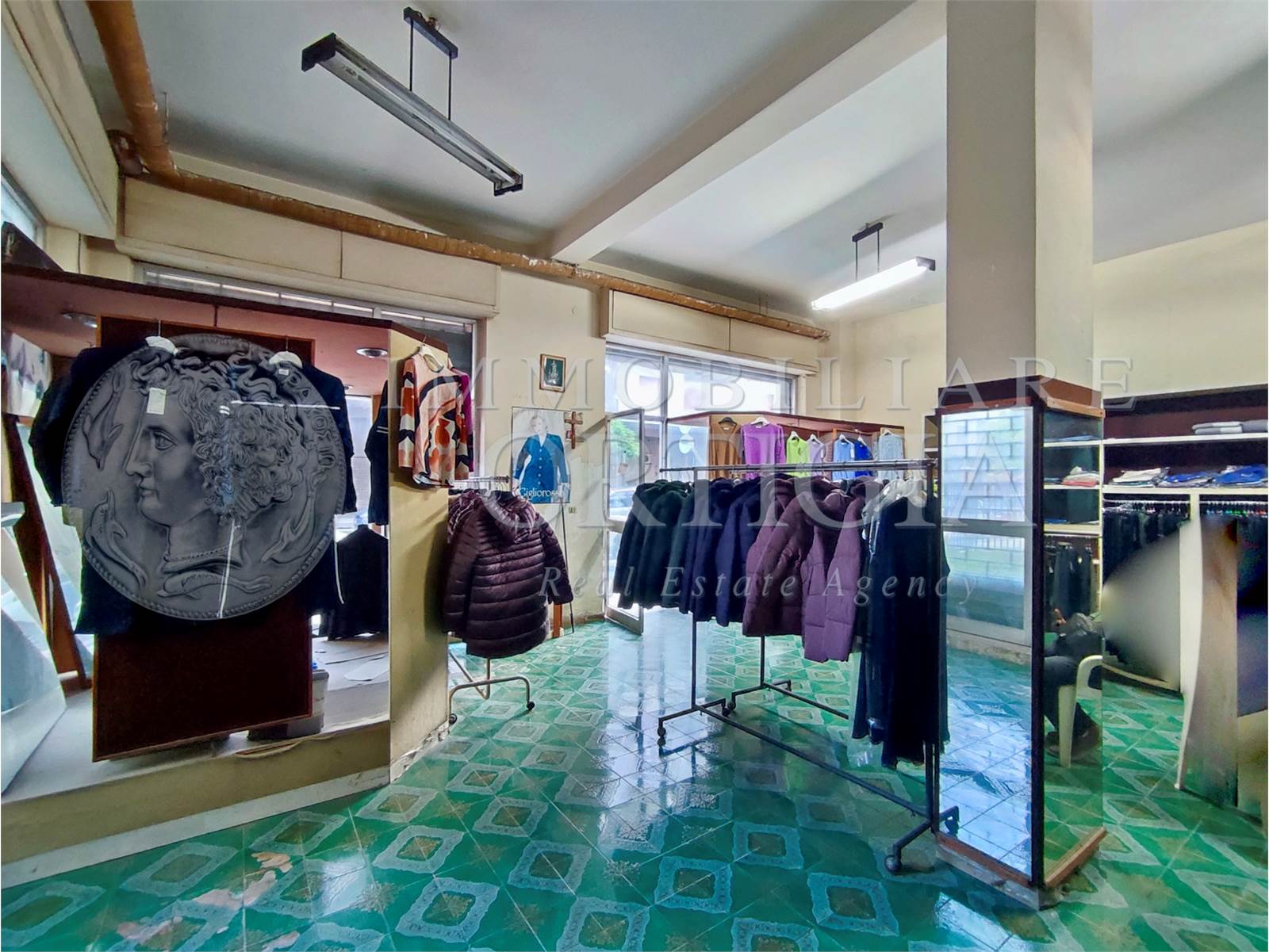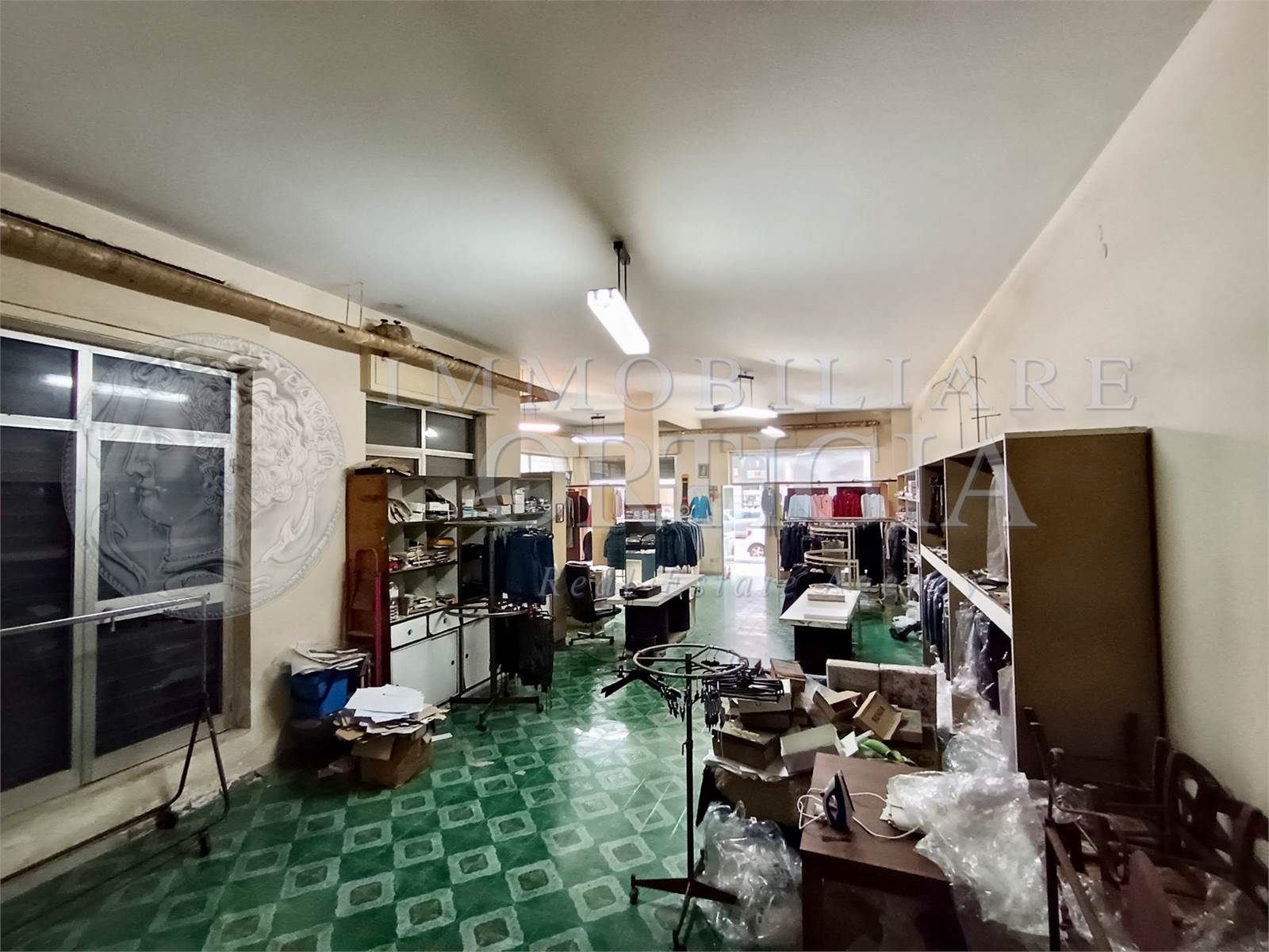 L'immobile all'interno si presenta come un grande vano con bagno e con un'altezza di 4 metri. Si presta anche per essere suddiviso in due unità. La vendita comprende anche cinquant'anni di attività commerciale.