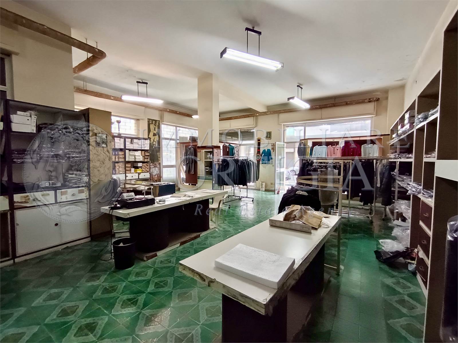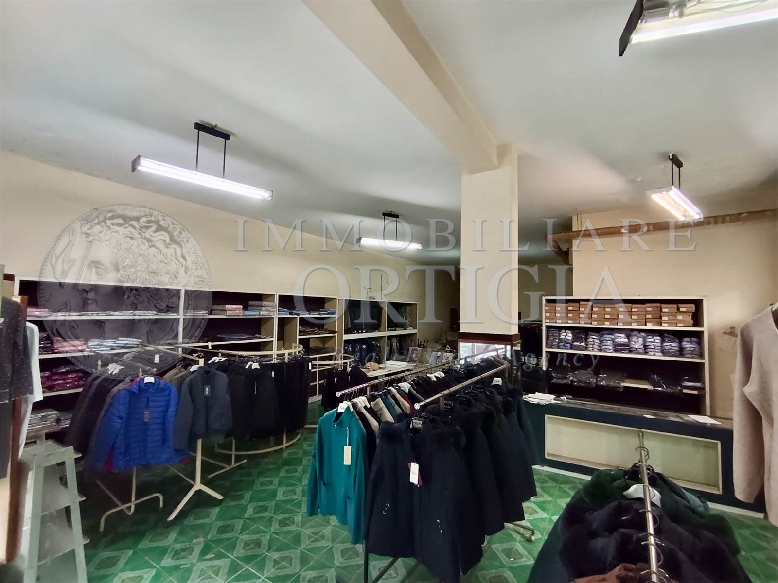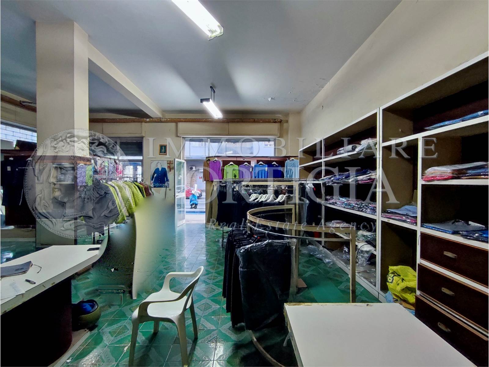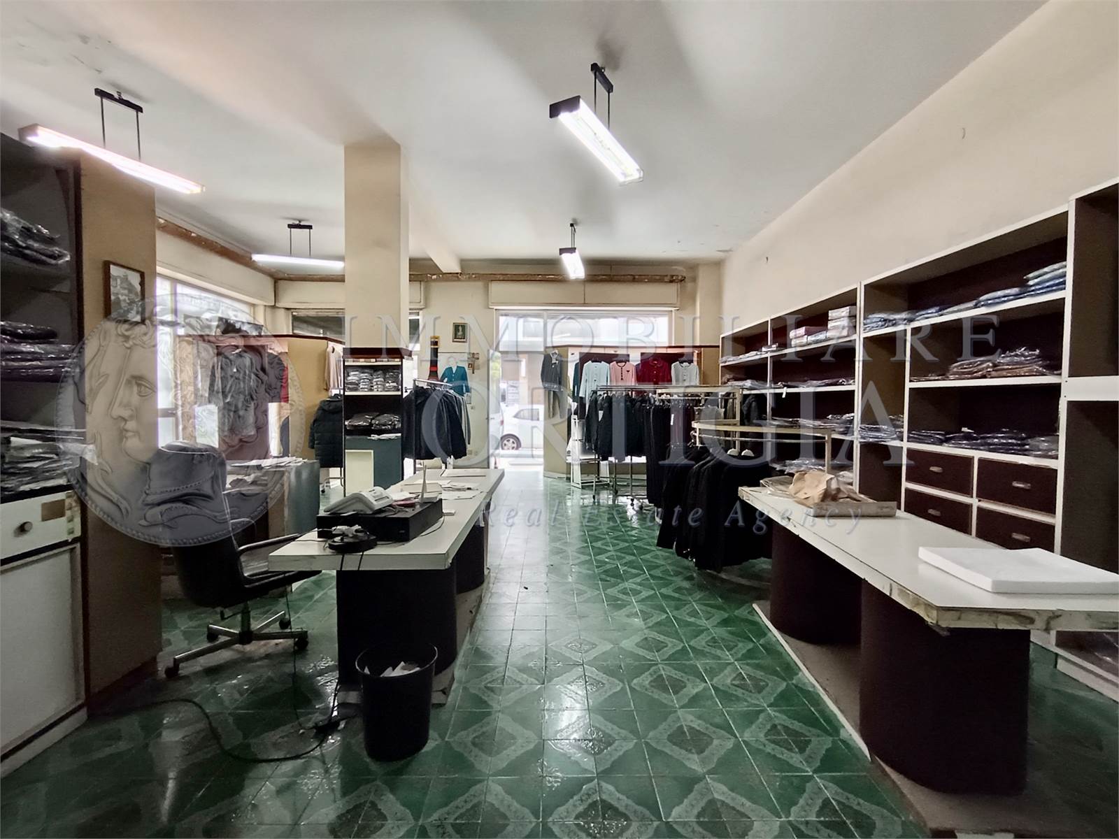 L'immobile all'interno si presenta come un grande vano con bagno e con un'altezza di 4 metri. Si presta anche per essere suddiviso in due unità. La vendita comprende anche cinquant'anni di attività commerciale.