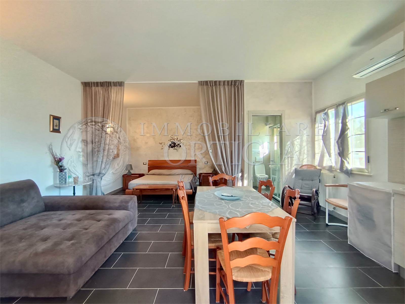 Al piano terra troviamo tre mini appartamenti indipendenti, ristrutturati e arredati con cura, ciascuno composto da cucina soggiorno, separé per zona notte e bagno. Sono dotati di tutti i comfort: climatizzatori, riscaldamento, TV e lavatrice. Ideali per chi desidera avviare o ampliare un’attività di casa vacanze o B&B.